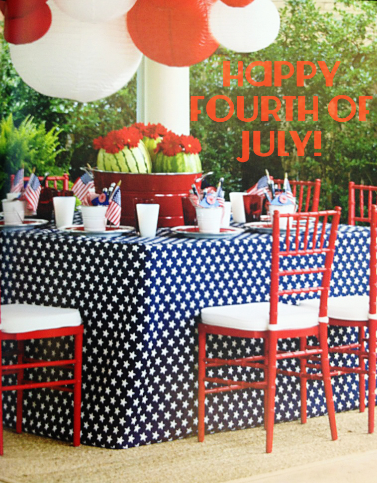 Throw a Fourth of July party with an outdoor table that will allow you to enjoy the pretty summer weather and move easily to a spot on the lawn to watch the local fireworks!