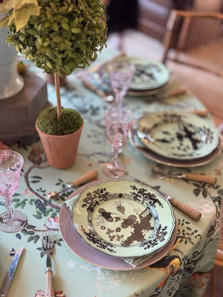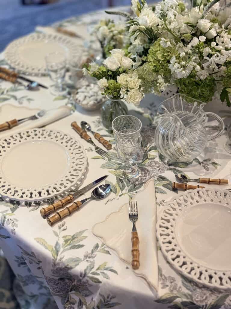 I was so impressed with the incredible designer tables at the 2025 Kappa Tablescapes event. They were all so elegant and inspiring. I loved every one but only captured images of a few of them as I was racing in to the Ball Room for my interview with Aerin Lauder. I was honored to be asked to interview her as the keynote for the event and she was charming and fascinating.